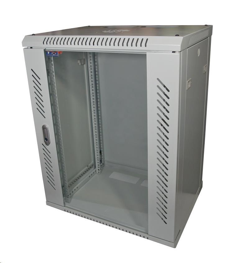 LEXI-Net 19" nástěnný rozvaděč 15U 600x450, nosnost 60 kg, skleněné dveře, rozložený, šedý