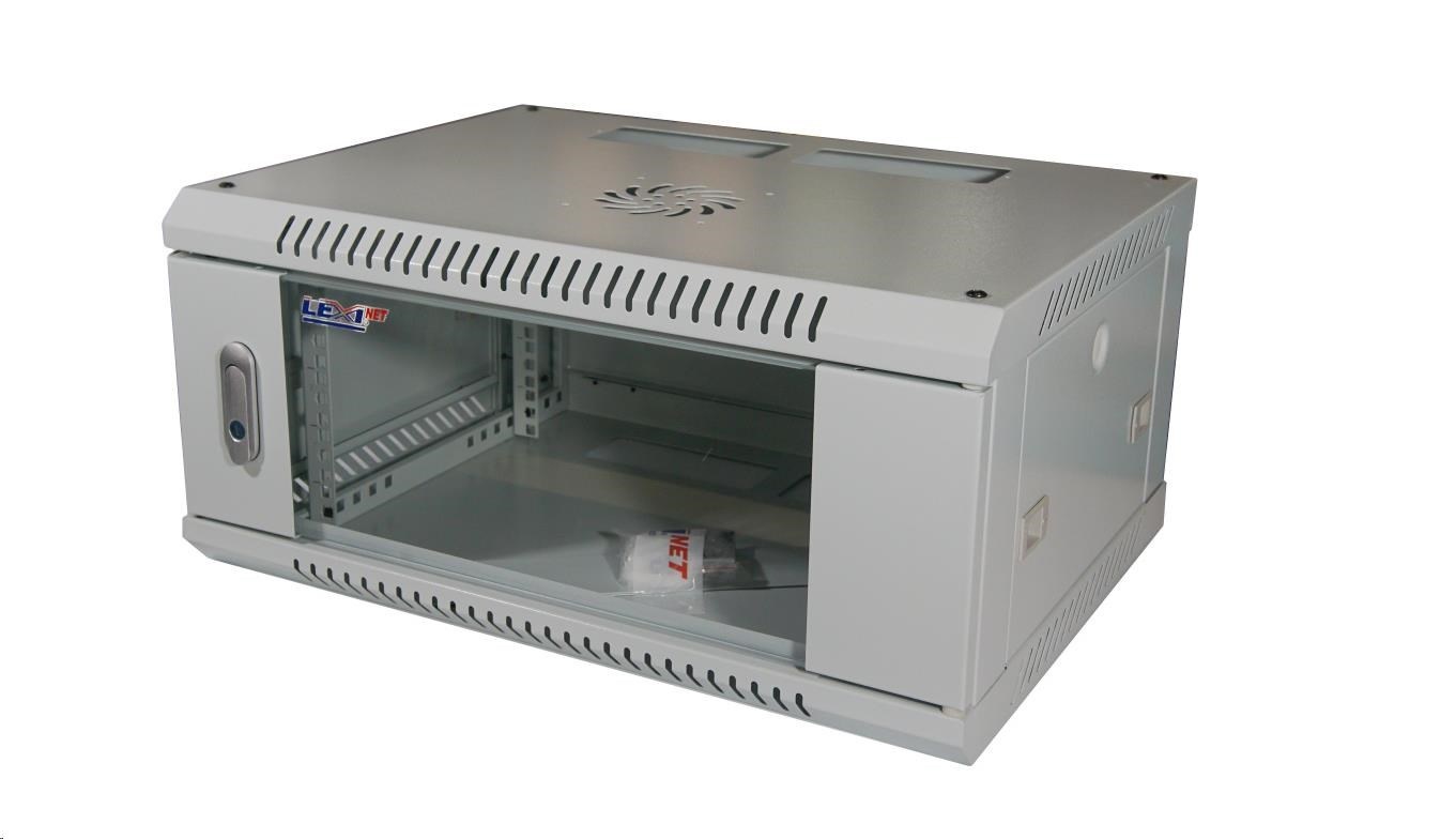 LEXI-Net 19" nástěnný rozvaděč 4U 600x450, nosnost 60 kg, skleněné dveře, rozložený, šedý