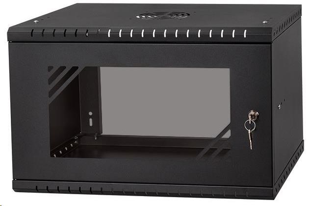 LEXI-Net 19" nástěnný rozvaděč Basic 6U 520x350, skleněné dveře, bez zad, rozložený, černý