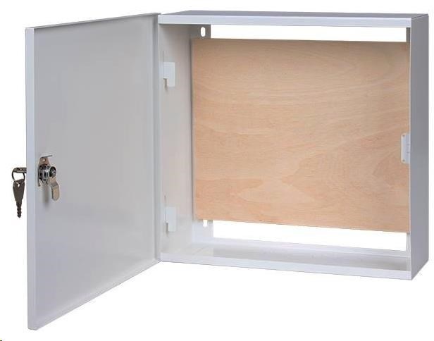 LEXI-Net univerzální skříň Basic 300x300x100 mm, montážní deska, bíláUniverzální uzamykatelná skříň, montáž na povrch osazená montážní deska - překližka 290 x 230 x 8mm.