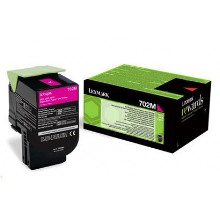 LEXMARK Magenta toner 702M pro CS310/410/510 z programu Lexmark Return (1 000 stran)Tisková technologie:Laserová; Typ produktu spotřebního materiálu:Barevná cartridge/toner/páska.