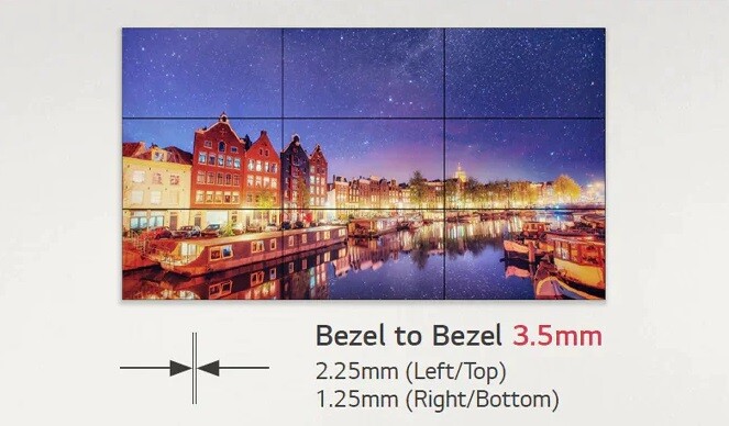 Ultra úzký rámeček o velikosti 3,5 mm vytváří na sestavených obrazovkách videostěn pohlcující a bezproblémový zážitek ze sledování.