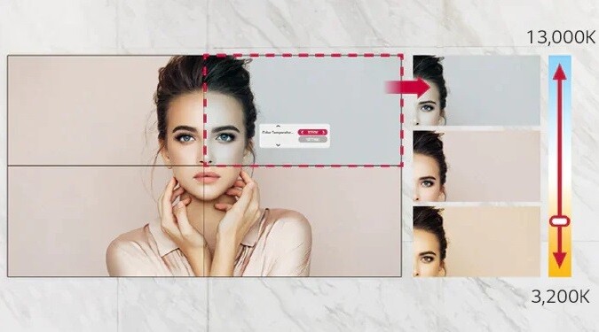 Teplotu barev displeje lze v závislosti na obsahu snadno nastavit v krocích po 100 K pomocí dálkového ovládání.