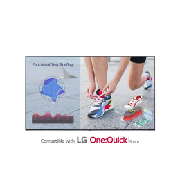 LG One:Quick Share je bezdrátové řešení pro sdílení obrazovky dostupné prostřednictvím řady UL3J, přenosové jednotky USB a její aplikace. Obrazovku osobního počítače můžete jednoduše sdílet s displejem pomocí tlačítka USB dongle a vestavěného Wi-Fi* a můžete upravit základní hodnoty nastavení (hlasitost, režim obrazu, automatický jas atd.) připojeného displeje bez dálkového ovládání. Režim Office Meeting Mode** vám také pomůže zobrazit agendu, poznamenejte si před zahájením schůzky.
