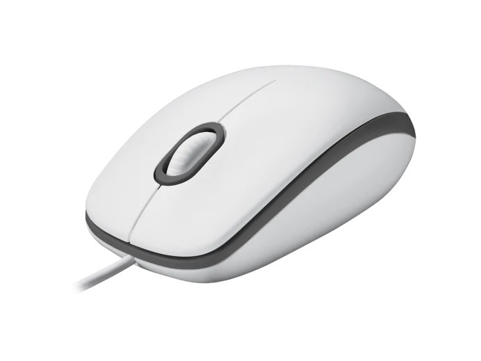 Logitech myš Corded M100, bílá, EMEARozhraní myši:Drátová USB; Druh myši:Optická; Specifikace myši:3 tlačítková, S kolečkem.