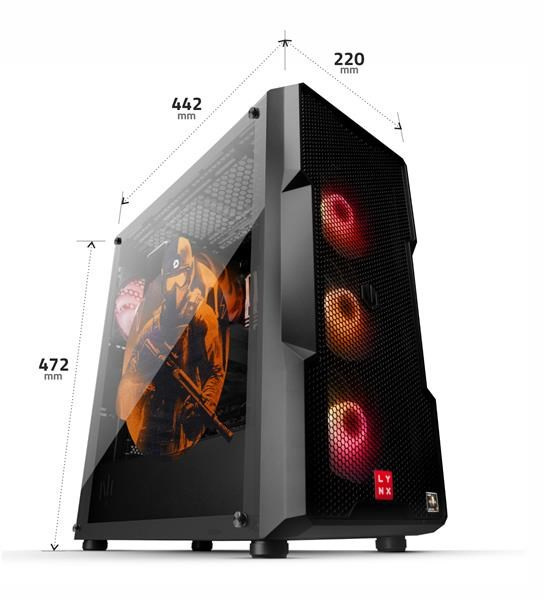Elegantní a prostorná skříň s výrazným designem a ARGB podsvícením. Nabízí vynikající airflow, přehledné vnitřní uspořádání a dostatek prostoru pro budoucí rozšíření – ideální základ pro výkonné sestavy.