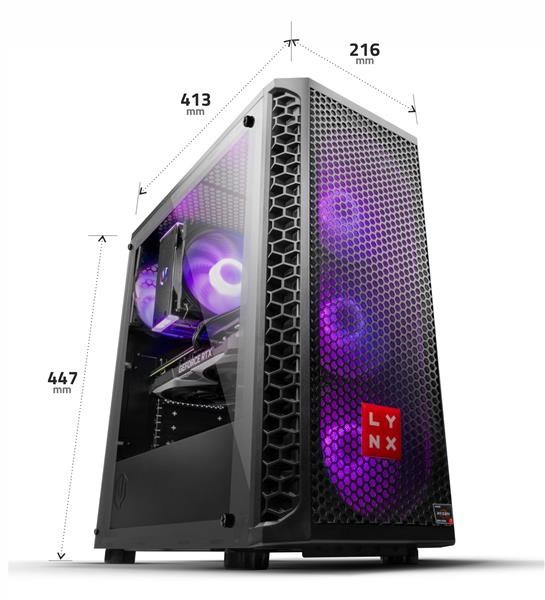 Herní PC LYNX je ideálním společníkem každého nadšeného hráče. Nabídne jak poutavý design, tak rychlý a pečlivě vyladěný hardware. U této sestavy vás potěší solidní výkon a cenová dostupnost, zcela postačí méně náročným hráčům, ale troufne si i na novější tituly. Základem univerzálního počítače LYNX eSuba PRO Intel Core i5 RTX 4060 je čip Intel Core i5 který doplňuje extra velká porce operační paměti. Nemůže chybět samostatná grafická karta, jejímž prostřednictvím vám neuniknou ani nejmenší detaily. Velkou výhodou je i vyšší rychlost úložiště, SSD disk bez mechanických částí je neuvěřitelně rychlý, běh celého systému i přístup k datům bude velmi svižný. Coby VR ready počítač zvládne i spojení s virtuální realitou. Ochranu všemu poskytuje skříň typu Midi Tower, ve které bude i dostatečný prostor pro další konfigurace. Ojedinělou podívanou během hraní pak připraví RGB podsvícení v PC skříni.