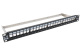 Patch panel 1U/19", 24 otvorů, neosazený, pro stíněné keystony, kategorie Cat5e/6/6A/7, černý (přední panel).