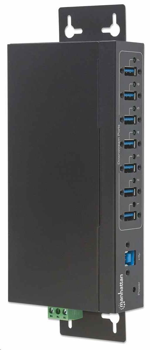 The Manhattan 7-Port Industrial USB 3.0 Hub easily expands and secures your USB access in industrial environments and high traffic areas. Versatile, sturdy mounting options allow the hub to be secured to a wall, used on a desktop or added to a DIN rail. This hub creates more open connection points for USB 3.0 devices, such as external hard drives and printers. Built-in screw-lock ports offer security for cables and additional stability from vibrations in the surrounding environment. It is backward compatible with previous USB standards to provide flexibility for attached devices. The Manhattan 7-Port Industrial USB 3.0 Hub offers plug-and-play, hot-swap capabilities and data transfer speeds up to 5 Gbps.