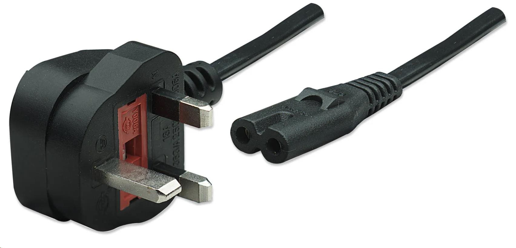 MANHATTAN Kabel napájecí, UK-plug/C7 female, 1.8m, černá