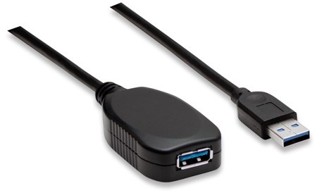 Use the Manhattan SuperSpeed USB Active Extension Cable to connect a computer USB port to a USB device almost anywhere in the room. Extend 5 meters more to the existing connection without signal loss. Manhattan SuperSpeed USB Active Extension Cable with built-in repeater is fully compliant with USB 3.0 and earlier specifications to help devices operate at maximum performance levels. Plug-and-play capability, Windows/7/8.1/10/Macintosh versatility and no external power or driver requirements help provide greater flexibility in computer and peripheral placement and office layout.