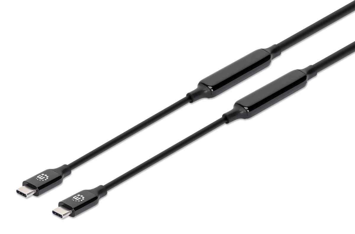MANHATTAN Kabel USB-C Male to Male, USB 3.2 Gen 2 Type-C Active Device Cable, 3m, pozlacené koncovky, černá