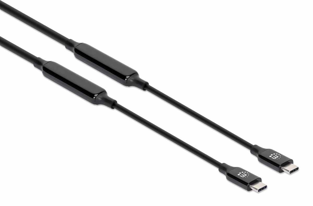 MANHATTAN Kabel USB-C Male to Male, USB 3.2 Gen 2 Type-C Active Device Cable, 5m, pozlacené koncovky, černá