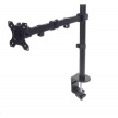 Constructed from durable steel, this single monitor mount features a sturdy clamp that allows for quick, easy and secure mounting without the need to drill holes into desks or countertops. Effectively accompanying a larger display or computer screen, its fully adjustable tilt, rotate, side-to-side, height and tension settings create the perfect position to comfortably increase productivity. Such adjustment capabilities can even help reduce eye fatigue or neck and back strain. In addition, the mount pole offers easy monitor rotation to allow others to view presentations and multimedia productions from almost any direction.