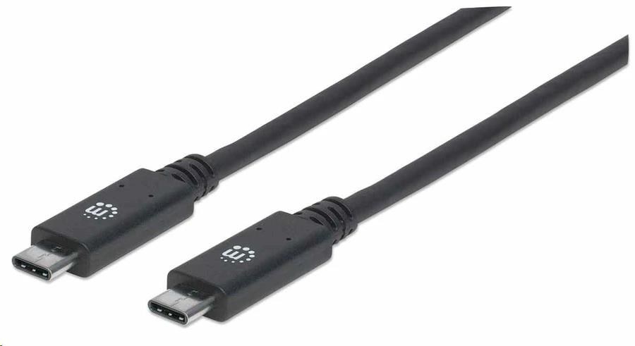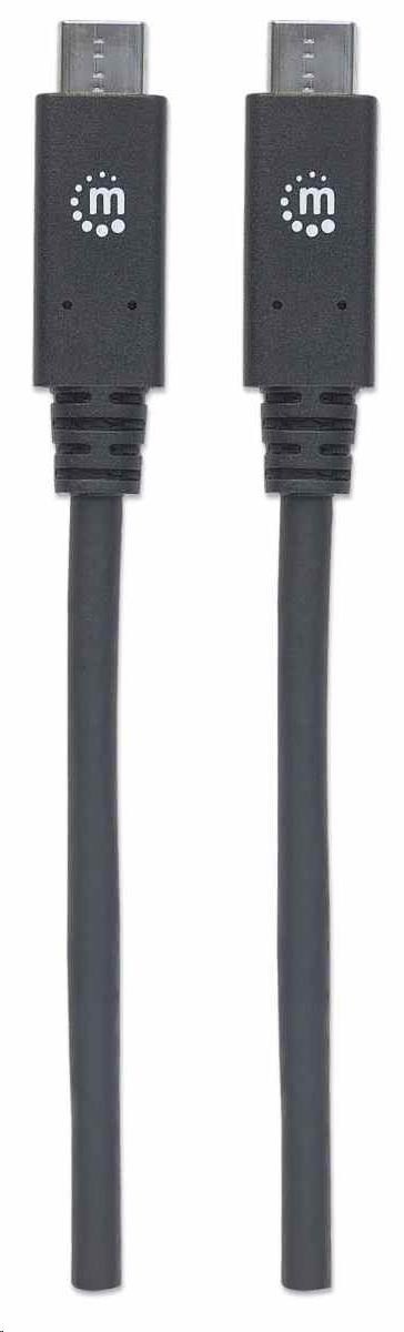 Manhattan USB-C kabel, USB 3.1 Gen 2, USB-C Male na USB-C Male, 10 Gbps, 5 A, 1m, černá