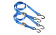 Master Lock Balení 2 ks (blistr) upínacích popruhů s pružinovou svorkou - 200cm -Set 2 ks upínacích popruhů s pružinovou svorkou a háčky na konci 4368EURDAT. Délka popruhu je 2 000 mm a jeho šířka činí 25 mm. Ocelové háčky s PVC krytem slouží pro lepší ochranu proti poškrábání. Maximální nosnost činí 150 kg. Nabízíme v modré barvě..