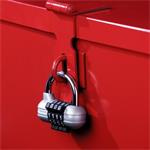 Master Lock Kombinační visací zámek horizontální 1520EURD - - šedýHorizontální visací kombinační zámek o šířce 64 mm má kovové tělo, které je odolné proti poškození. Jeho třmen je vyroben z kalené oceli o průměru 7 mm a je odolný proti přeřezání. Barva: šedá (černý podklad pro kód). Cena za kus..