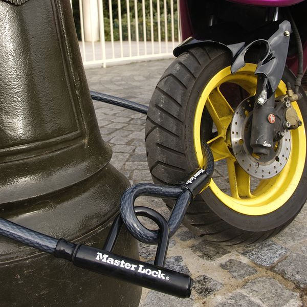 Master Lock Ocelové lanko 8156EURDPS - 150cmOcelové lanko dlouhé 1 500 mm má průměr 20 mm. Součástí lanka je integrované pevné ocelové oko ve tvaru U. Vinylový potah zabraňuje poškrábání laku..