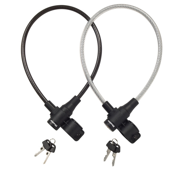 Ocelové kroucené lanko na klíč o délce 65cm a průměru 8mm má vinylový potah, který zabraňuje poškrábání. Obsahuje integrovaný zajišťovací mechanismus s válcovým klíčem, součástí balení jsou 2ks klíčů a montážní konzola pro snadnou přepravu.