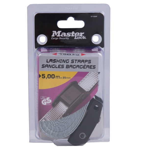 Master Lock Upínací popruh 3112EURDAT - 500cmUpínací popruh 3112EURDAT s vyztuženou přezkou pro vyšší nosnost. Délka popruhu je 5 000 mm a šířka 25 mm. Maximální nosnost činí 150 kg. Nabízíme v šedé barvě. Cena za kus..