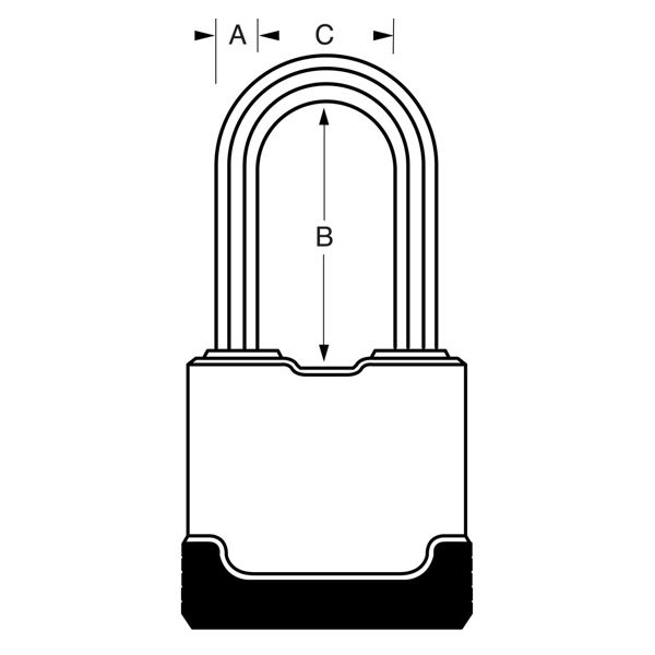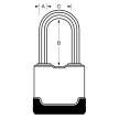- Visací zámek o šířce 54 mm s tělem z laminované oceli s povrchovou úpravou odolnou proti povětrnostním vlivům.