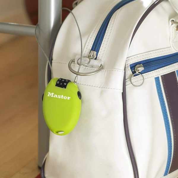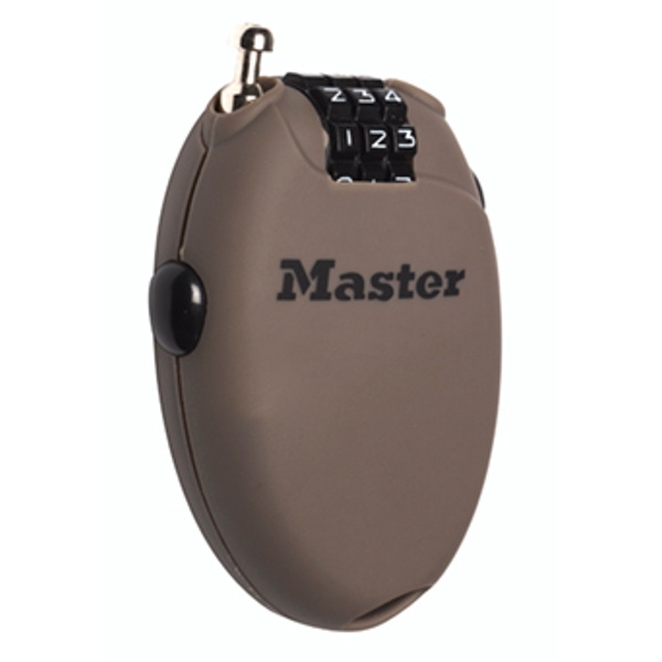 Master Lock Zatahovací kabelový zámek 4603EURD - hnědýZatahovací kabelový zámek o délce 70 cm a průměru 2 mm pro pevnost a flexibilitu; ochranný vinylový potah chrání proti poškrábání; lehce stahovatelný ocelový pletený kabel; obsahuje 3-místnou resetovatelnou kombinaci zámku; doporučeno pro ochranu zavazadel, sedadel a helem. Barva hnědá. Cena za kus..