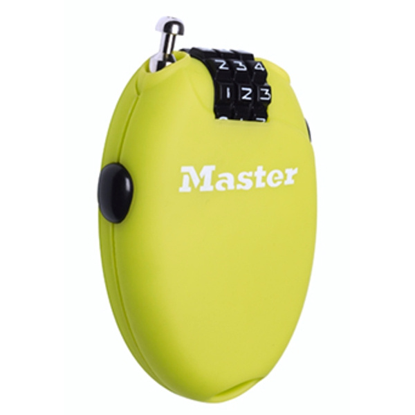Master Lock Zatahovací kabelový zámek 4603EURD - zelenýZatahovací kabelový zámek o délce 70 cm a průměru 2 mm pro pevnost a flexibilitu; ochranný vinylový potah chrání proti poškrábání; lehce stahovatelný ocelový pletený kabel; obsahuje 3-místnou resetovatelnou kombinaci zámku; doporučeno pro ochranu zavazadel, sedadel a helem. Barva zeleno-žlutá. Cena za kus..