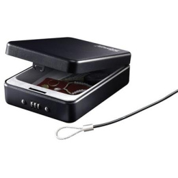 Uzamykatelný cestovní box na cennosti P005CEURBLKHRO je vhodný pro uschování klíčů, hotovosti, dokladů, šperků nebo drobné elektroniky. Box má pevnou ocelovou konstrukci. Je zde nastavitelný 3-ciferný kombinační zámek (1000 možností). Dále je součástí integrované ocelové lanko o průměru 4 mm a délce 900 mm pro uchycení k pevnému bodu. Dno boxu pokrývá měkká pěna..