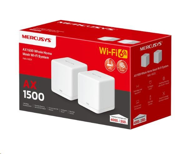 MERCUSYS Halo H60X(2-pack) WiFi6 Mesh (AX1500,2,4GHz/5GHz,3xGbELAN/WAN(1xXR Unit), 2xGbELAN/WAN (1xXS Unit)