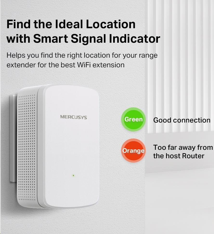 Nástěnný extender signálu ME10 slouží k rozšíření pokrytí Wi-Fi sítě a posílení signálu existující hostitelské sítě. S rychlostmi připojení až 300 Mbit/s můžete Wi-Fi síť každý den používat k hraní on-line her, stahování velkých souborů a sledování filmů na libovolném místě v domě.