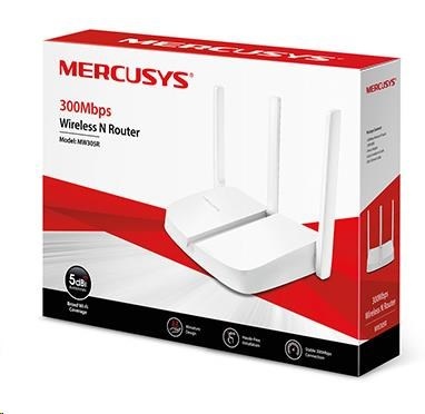 MERCUSYS MW305R WiFi4 router (N300, 2,4GHz, 3x100Mb/s LAN, 1x100Mb/s WAN)Typ aktivního prvku:Wifi Router, Bridge; Frekvenční pásmo (GHz):2,4; Podporované standardy:802.11b/g, 802.11b/g/n, 802.11b, 802.11g, 802.11n; Zabezpečení:WPA-PSK, WPA2-PSK; Typ antény:Vestavěná; Použití:Vnitřní; Počet portů LAN:3; Počet WAN portů:1; Další vlastnosti:Rodičovská kontrola, Firewall, Síť pro hosty, Management.