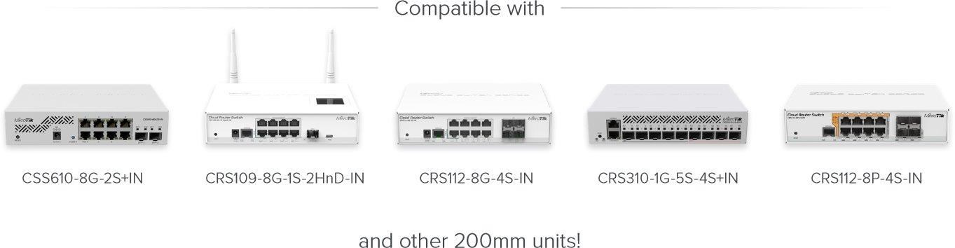 MikroTik RMK-2/10 - 1U rack mount kitPopis produktu Rackmount kit RMK-2/10 umožňuje instalaci dvou menších zařízení MikroTik s šířkou 200
