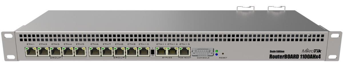 MikroTik RouterBOARD RB1100Dx4 DudeEdition (RB1100AHx4), 1.4GHz Quad-Core CPU, 1GB RAM, 13x LAN, vč. L6 licence1.4GHz Quad-Core CPU, 1GB RAM, 13x LAN, vč. L6 licence.