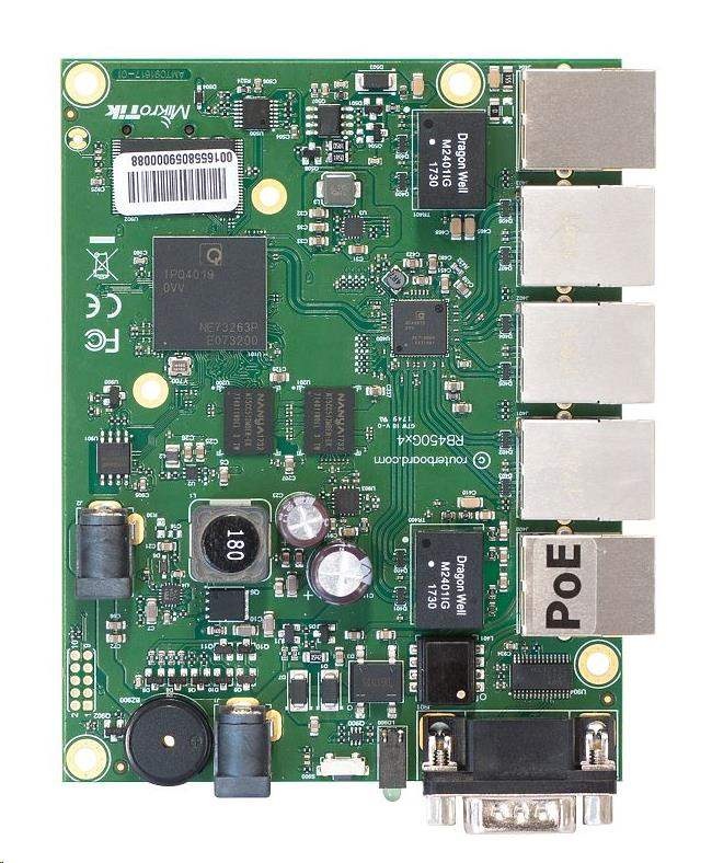 MikroTik RouterBOARD RB450Gx4, quad-core 716MHz ARM CPU, 1GB RAM, 5x LAN, vč. L5 licence
