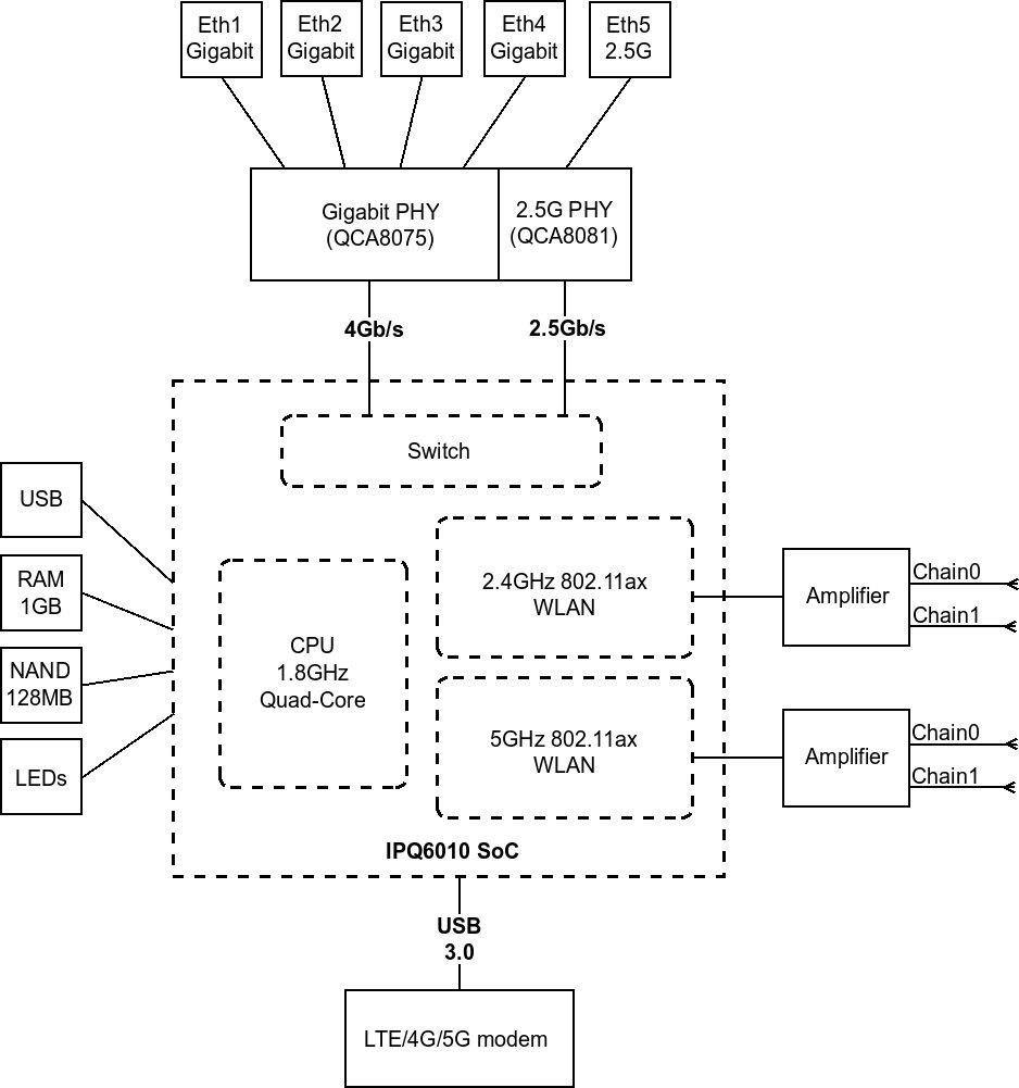 MikroTik S53UG+5HaxD2HaxD-TC&EG18-EA, Chateau LTE18 ax kitPopis produktu Chateau LTE18 ax je Dual Band 2.4/5GHz Wi-Fi 6 router do domácnosti či malých firem s