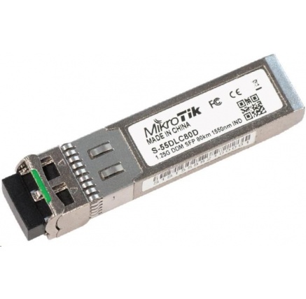 S-55DLC80D je singlemode Gigabitový SFP modul s vlnovou délkou 1550nm a dvěma LC konektory pro spojení až na vzdálenost 80km. Modul je kompatibilní se všemi aktivními prvky od MikroTiku a také se zařízeními jiných výrobců "cisco compatibile".