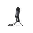 USB mikrofon TU1 dostal černý celokovový design, který je odolný proti opotřebení. Dokáže efektivně eliminovat nežádoucí rezonance, a tím zachovává věrnost zvuku.