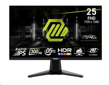 MSI LCD MAG 255XF, 24.5", 1920x1080, Rapid IPS, 0,5ms, VESA 100x100, BlackRozlišení displeje:1920x1080 (Full HD); Úhlopříčka displeje ("):24.5; Výbava:VESA montáž; Doba odezvy (ms):0.5; Typ panelu:IPS; Obnovovací frekvence displeje (Hz):300; VESA rozměry:100x100; Hmotnost (kg):5.13; Rozhraní:HDMI, DisplayPort.