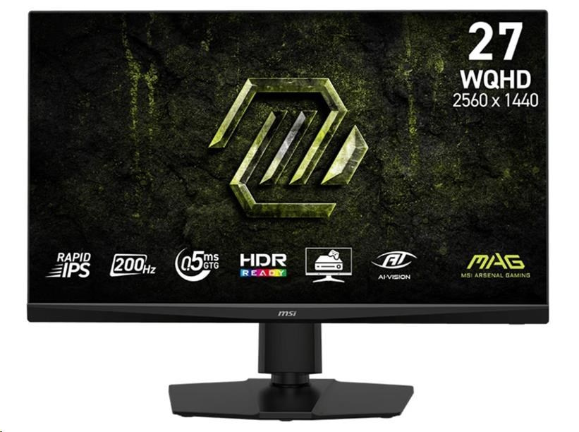 MSI LCD MAG 272QPF E20, 27", 2560x1440, Rapid IPS, 0,5 ms, VESA 100x100, BlackRozlišení displeje:2560x1440; Úhlopříčka displeje ("):27; Výbava:VESA montáž; Doba odezvy (ms):0.5; Typ panelu:IPS; Obnovovací frekvence displeje (Hz):200; VESA rozměry:100x100; Rozhraní:HDMI, DisplayPort.