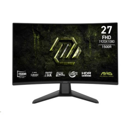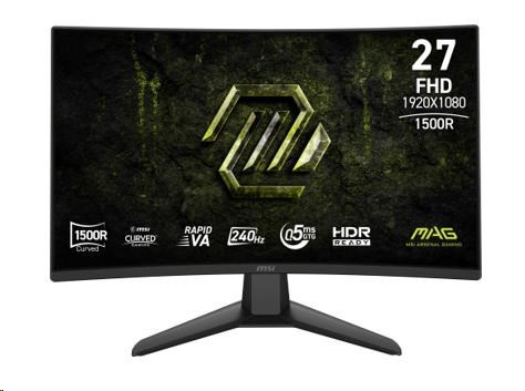 MSI LCD MAG 274CF X24, 27", 1920x1080, Rapid VA, 0,5 ms, VESA 100x100, BlackRozlišení displeje:1920x1080 (Full HD); Úhlopříčka displeje ("):27; Výbava:VESA montáž; Doba odezvy (ms):0.5; Formát obrazovky:16:9; Typ panelu:VA; Obnovovací frekvence displeje (Hz):240; VESA rozměry:100x100; Rozhraní:HDMI, DisplayPort.