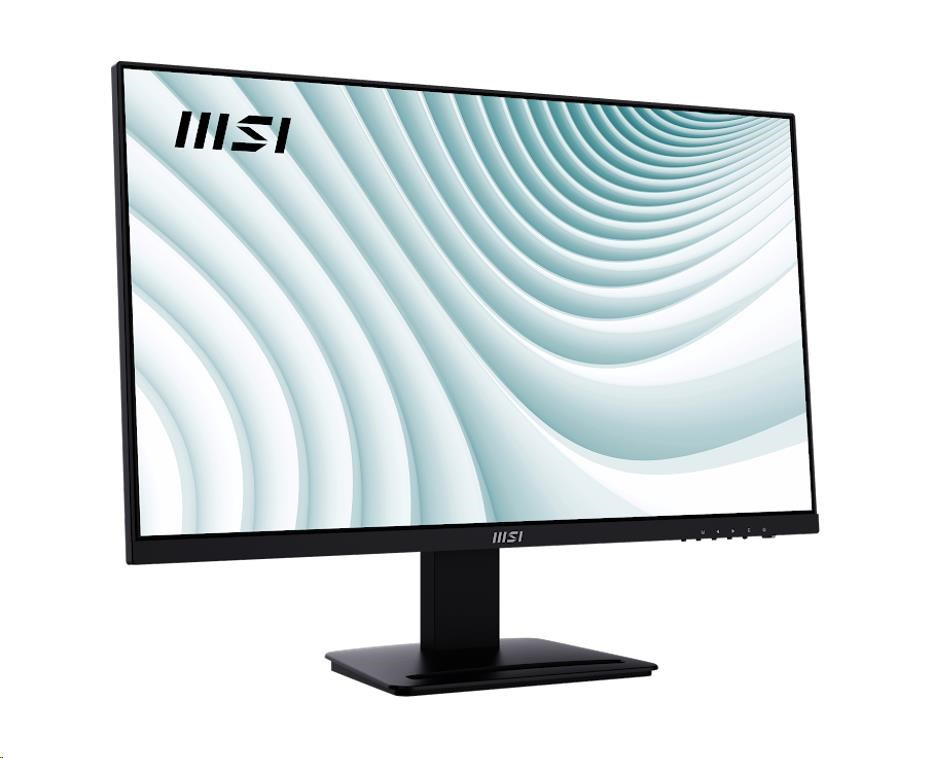 MSI LCD PRO MP273A, 27" 1920x1080, IPS, 100Hz, 1ms, VESA 75x75mm, N/A, BlackPoužití:Kancelářský; Úhlopříčka displeje ("):27; Rozlišení displeje:1920x1080 (Full HD); Výbava:Reproduktory, VESA montáž, Redukce blikání (flicker-free), Redukce modrého světla; Doba odezvy (ms):1; Typ panelu:IPS; Jas (cd/m2):300; Kontrast:1:1000; Obnovovací frekvence displeje (Hz):100; Povrchová úprava displeje:Matný; VESA rozměry:75x75.