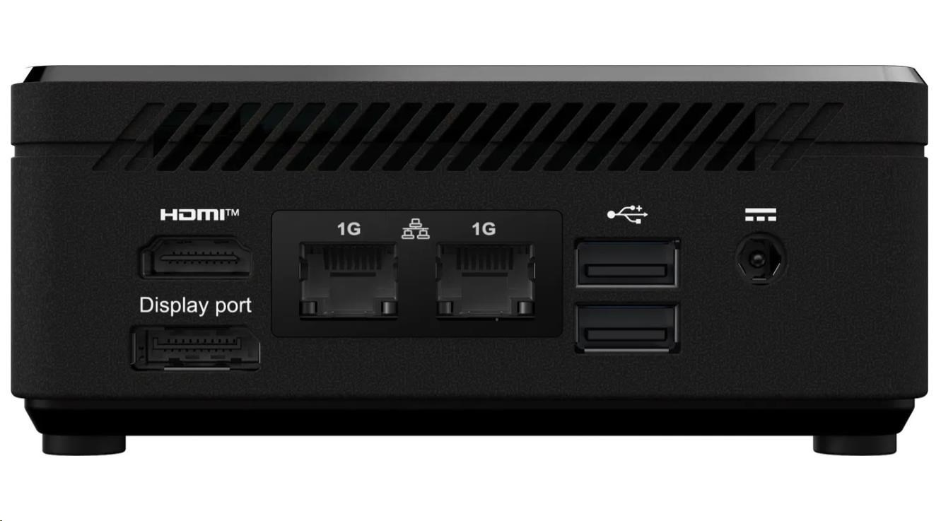 MSI PC Cubi N ADL S-226BEU,N200,N/A,N/A SSD,UHD,No OS,BlackProvedení počítače:Mini-PC; Typ sestavy:Kancelářsky; Operační systém:bez OS; Řada procesorů:Intel® N200; Model procesoru:Intel® N200; Model grafické karty:Intel UHD; Typ paměti:DDR4; Obsazené/celkem sloty RAM:0/1; Typ disku:SSD; Rozhraní:LAN (RJ-45), USB 3.2 Gen 2, HDMI, USB 2.0, 3.5mm Jack, DisplayPort, USB Type-C; Výkon zdroje (W):65.