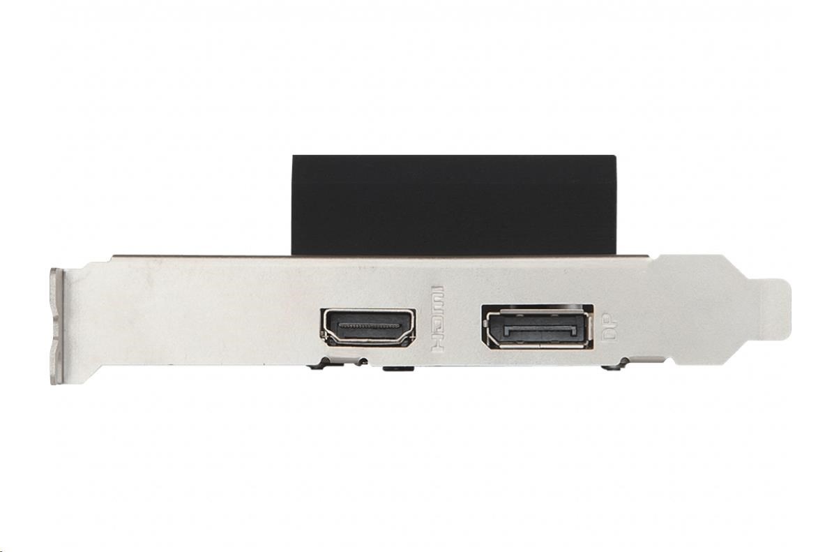 MSI VGA NVIDIA GeForce GT 1030 2GHD4 LP OC, GT 1030, 2GB DDR4, 1xDP, 1xHDMIVýrobce procesoru GPU:nVidia; Model grafické karty:NVIDIA GT1030; Použití grafické karty:Kancelářské; Typ paměti:GDDR4, DDR4; Rozhraní sběrnice:PCI Express x16 3.0; Počet VGA Portů:0; Chlazení grafické karty:Pasivní.