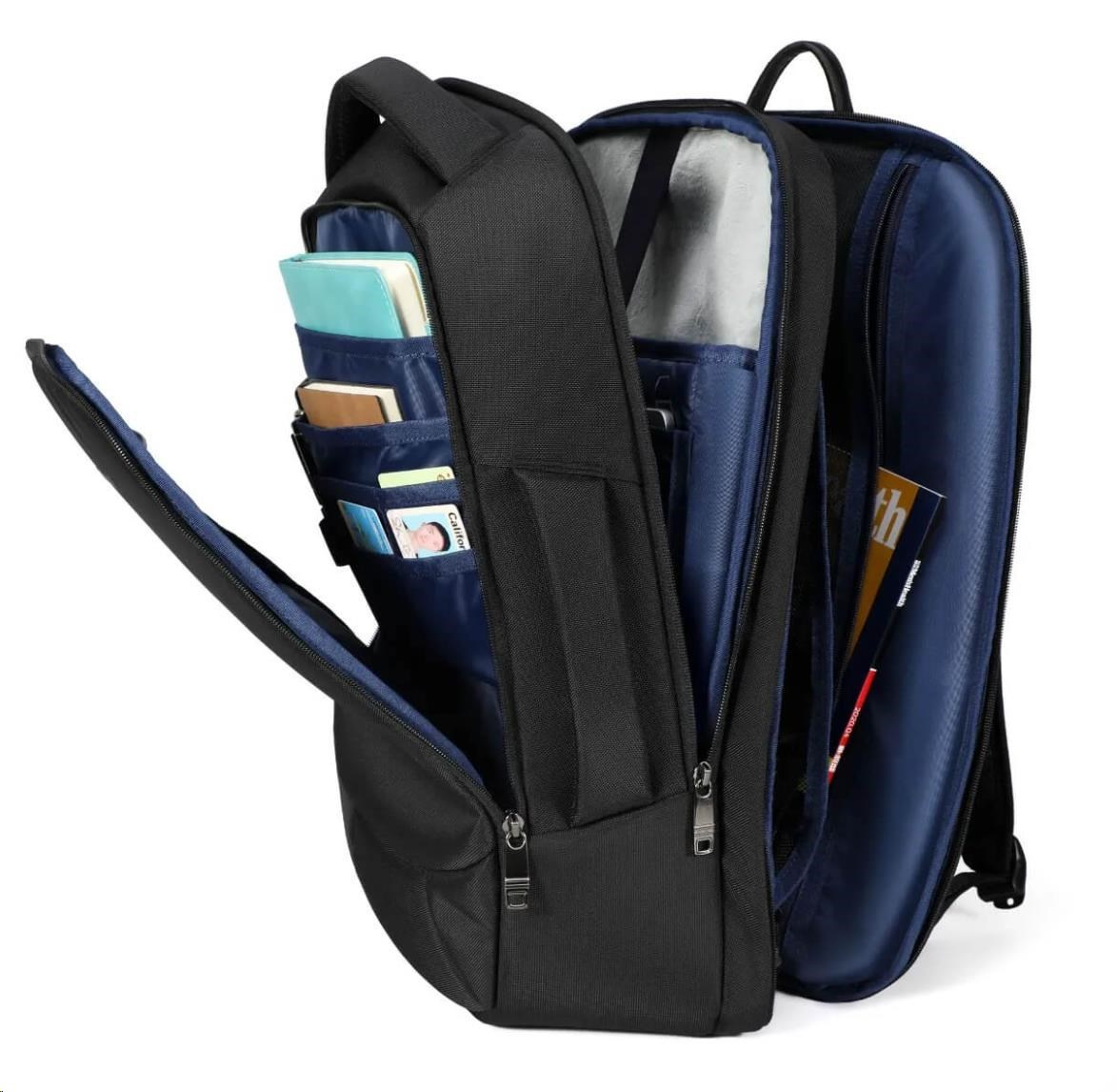 Úložný prostor batohu je členěn do tří velkých kapes, kapsy na láhev a bezpečnostní skryté kapsy. Samozřejmostí jsou také vnitřní přihrádky a bezpečnostní poutko na klíče.