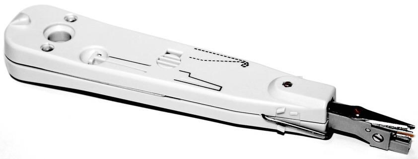 Narážeč s nožem pro krone LSA, bílýPro svorkovnici typu LSA krone Nůžky pro automatické odstřihnutí kabelu při terminaci Nástroje pro vytažení a srovnání drátu ve svorkovnici na bocích narážeče..