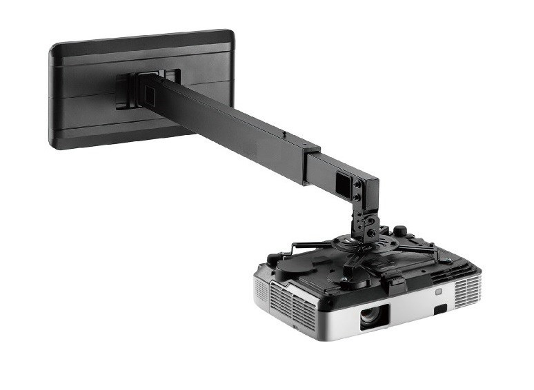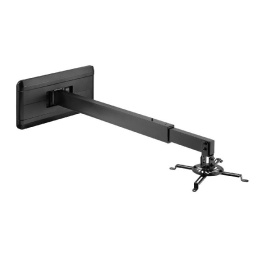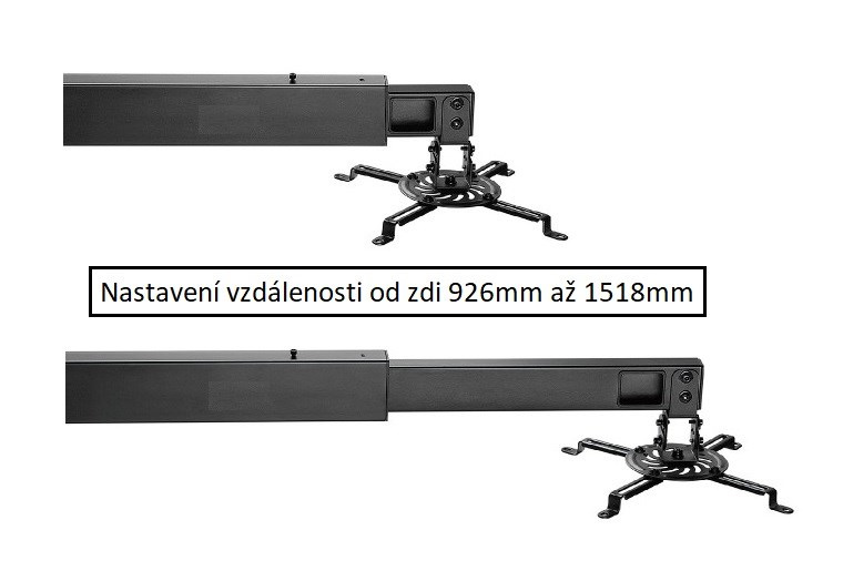 Nástěnný držák projektoru M9C45Nástěnný držák na projektor, nastavení vzdálenosti od zdi 926-1518mm, otočný +/-180°, sklopný +/-15°, skryté vedení kabeláže, nosnost 15kg.