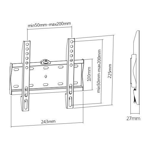 Nástěnný pevný držák na Tv i monitory Fiber Mounts FM21FLevný nástěnný fixní držák na televize a monitory 17-43", VESA 75x75 až 200x200, vzdálenost od zdi 27mm, bez možnosti náklonu, nosnost 30kg.