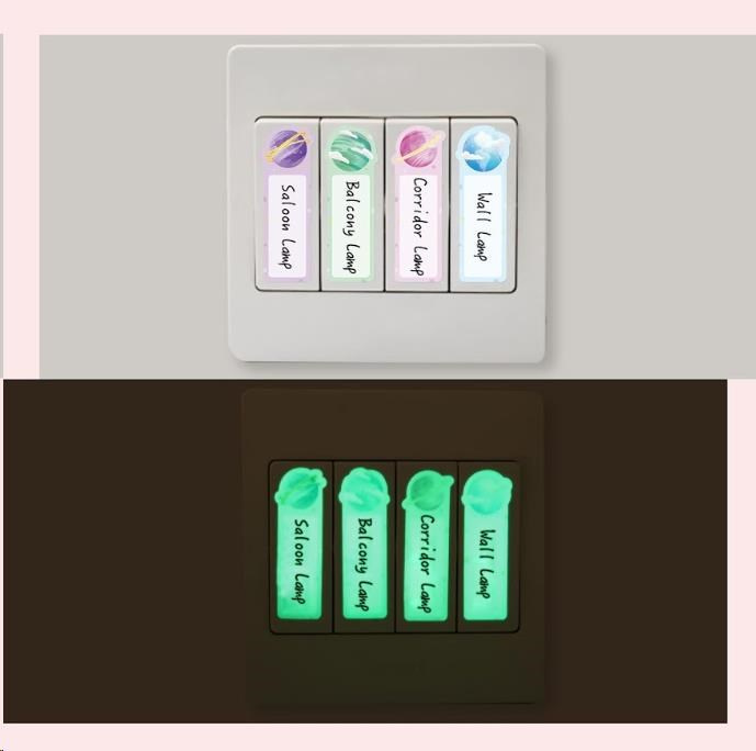 Balení obsahuje 1x roli samolepících štítků Niimbot, svítících ve tmě s motivy planet o rozměru 14x40mm – 80ks.