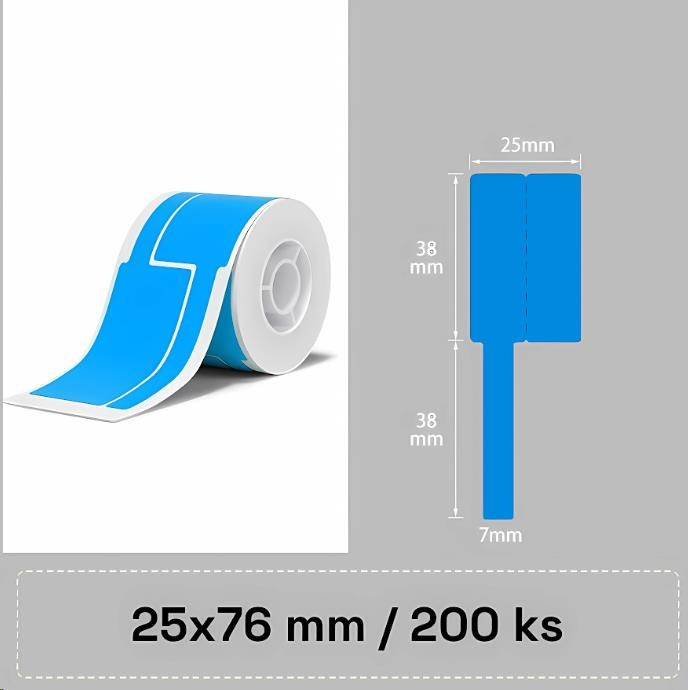 Balení obsahuje 1x roli modrých samolepících štítků Niimbot na kabely o rozměru 25x76mm – 200ks.