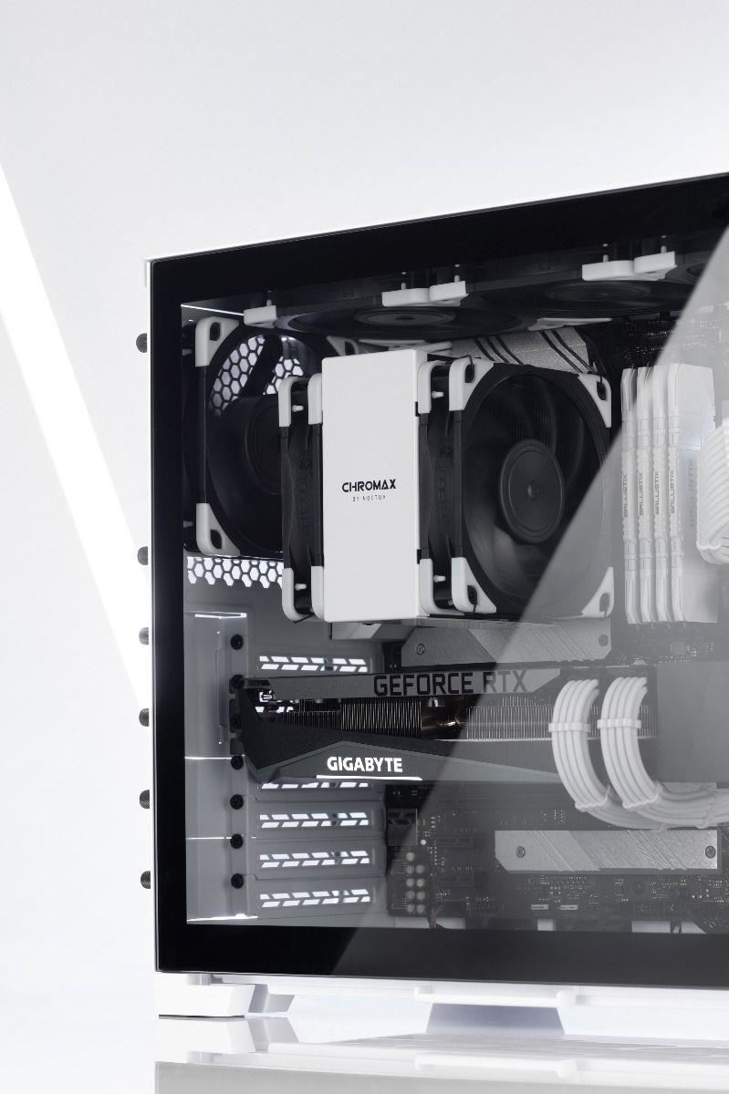 Chladičový kryt NA-HC8 chromax.white je přídavné příslušenství pro oceňované CPU chladiče NH-U12A od Noctua. Vyrobeno z vysoce kvalitního hliníku s bílou práškovou povrchovou úpravou, umožňuje uživatelům dát chladiči elegantní sněhobílý vzhled, který se skvěle hodí do celobílých nebo černobílých sestav. Díky snadné a přímočaré instalaci trvá změna vzhledu chladiče NH-U12A jen pár minut a nevyžaduje ani jeho odpojení od CPU. V kombinaci s ventilátory chromax.black.swap edice NF-A12x25 vám NA-HC8 chromax.black dává možnost proměnit váš NH-U12A v černobílý výkonný stroj, který vypadá stejně skvěle, jako chladí.